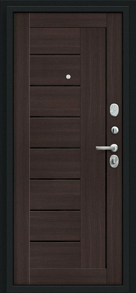 Надежная входная Дверь Браво Проф Букле черное/Wenge Veralinga премиум класса по цене 34 700 руб. Большая толщина стали защитит от проникновения в ваш дом, квартиру или коттедж. Используется очень качественная фурнитура: замки, цилиндры, ручки, защелки. Покрытие и отделка двери изготовлено под внимательным контролем производителя. Дверь имеет долгий срок службы и гарантию.