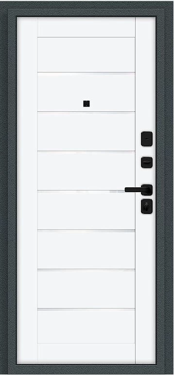 Надежная входная Дверь Браво Техно/SBlack Старк антрацит/White Silk премиум класса по цене 36 000 руб. Большая толщина стали защитит от проникновения в ваш дом, квартиру или коттедж. Используется очень качественная фурнитура: замки, цилиндры, ручки, защелки. Покрытие и отделка двери изготовлено под внимательным контролем производителя. Дверь имеет долгий срок службы и гарантию.