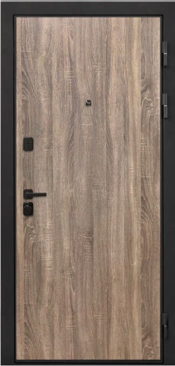 Дизайнерская входная Дверь Интекрон Профит Black (фурнитура черная) Дуб турин класса Люкс с несколькими листами стали, звукоизоляцией и теплоизоляцией. Утепленный короб и полотно защитят от сквозняков и шумов. Модель не только надежная, комфортная, защищенная и высочайшего качества, но и очень красивая! Будет отлично сочетаться с интерьером дома, квартиры или офиса. Сейчас действует выгодное предложение по цене: 78 750 руб.